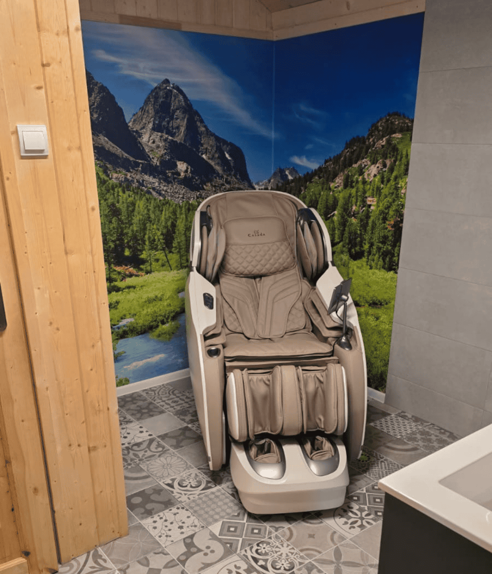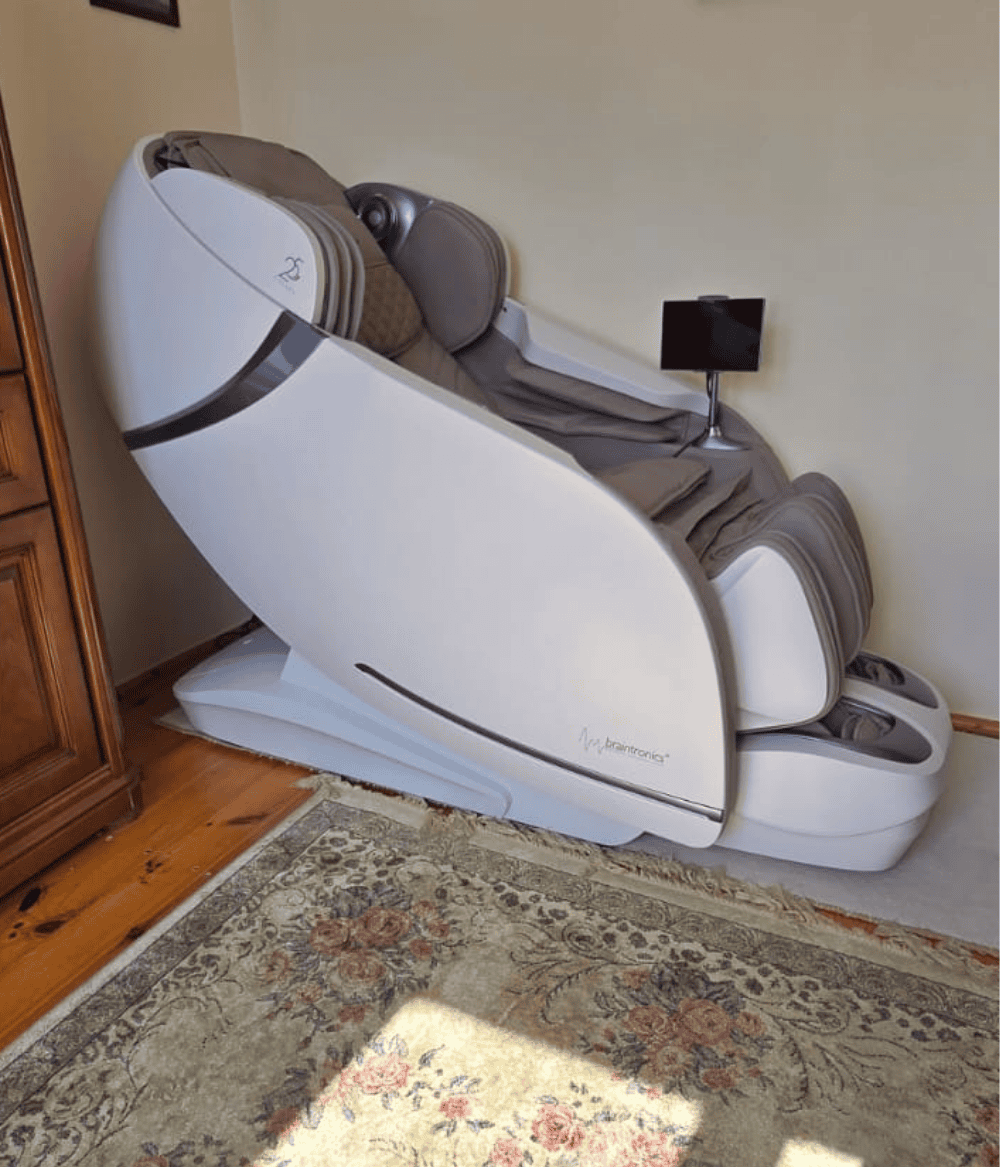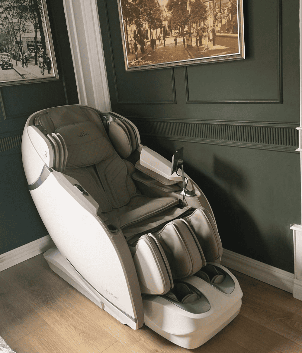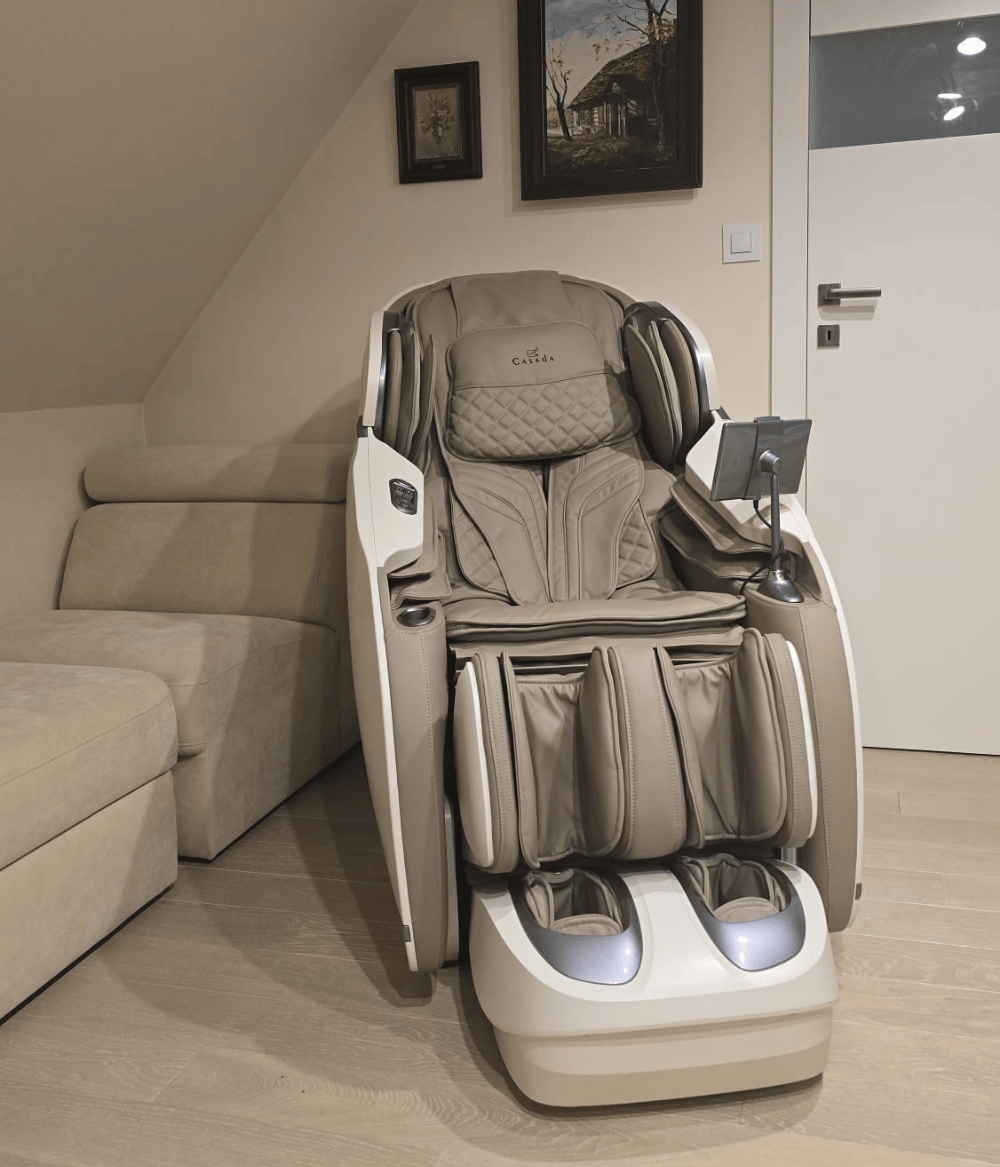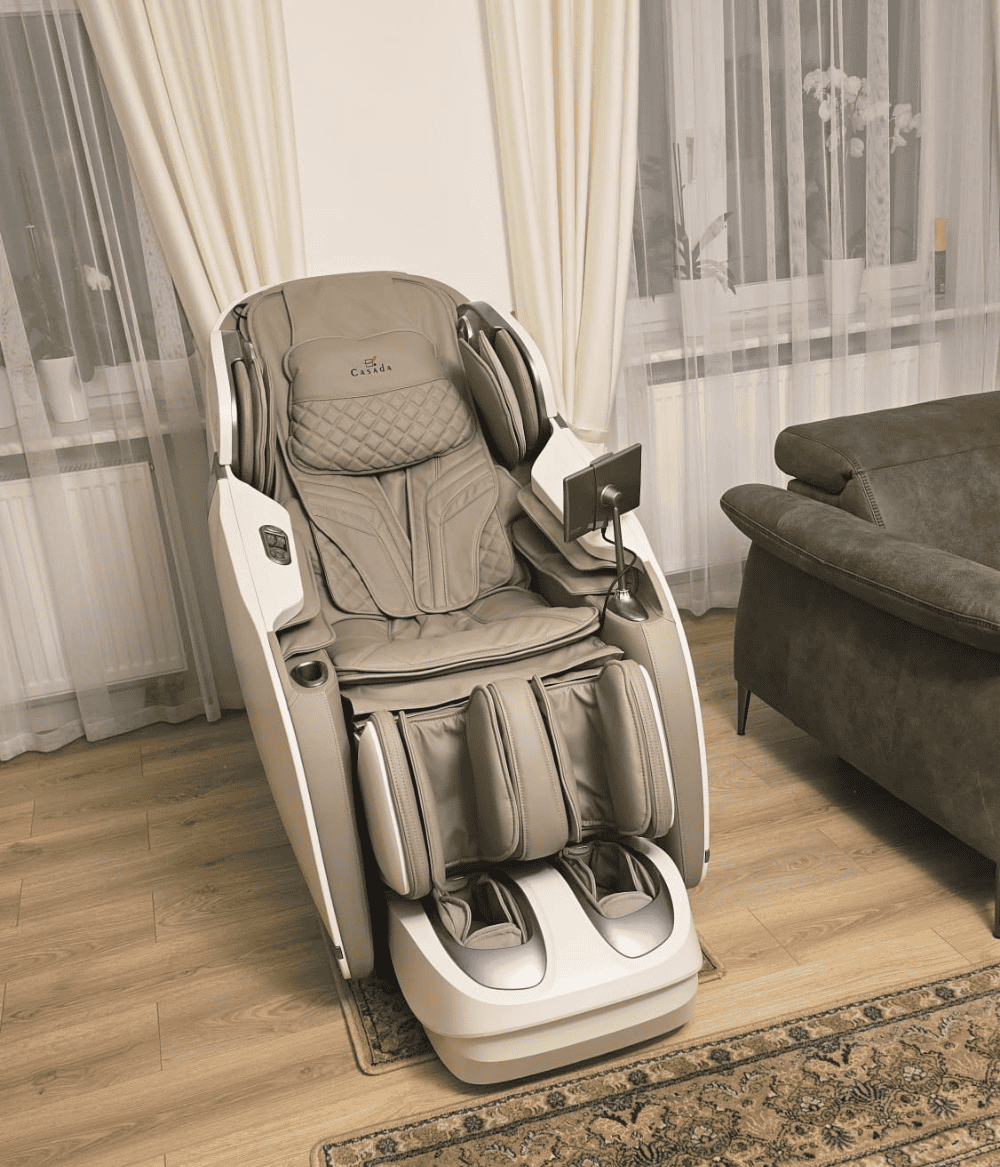 Wyposażony został w mechanizm masujący 4D, grafenowy pas grzejący i aż 20 automatycznych programów masażu całego ciała, dsotępnych w 3 intensywnościach.