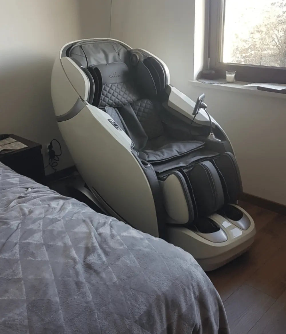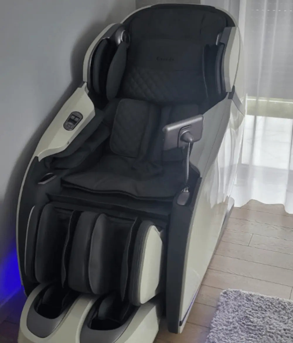 Wyposażony został w mechanizm masujący 3D i daje mnóstwo możliwości w zakresie manualnych ustawień masażu. Jego super mocą jest masaż odcinka szyjnego kręgosłupa, dzięki technice shoulder grasp.