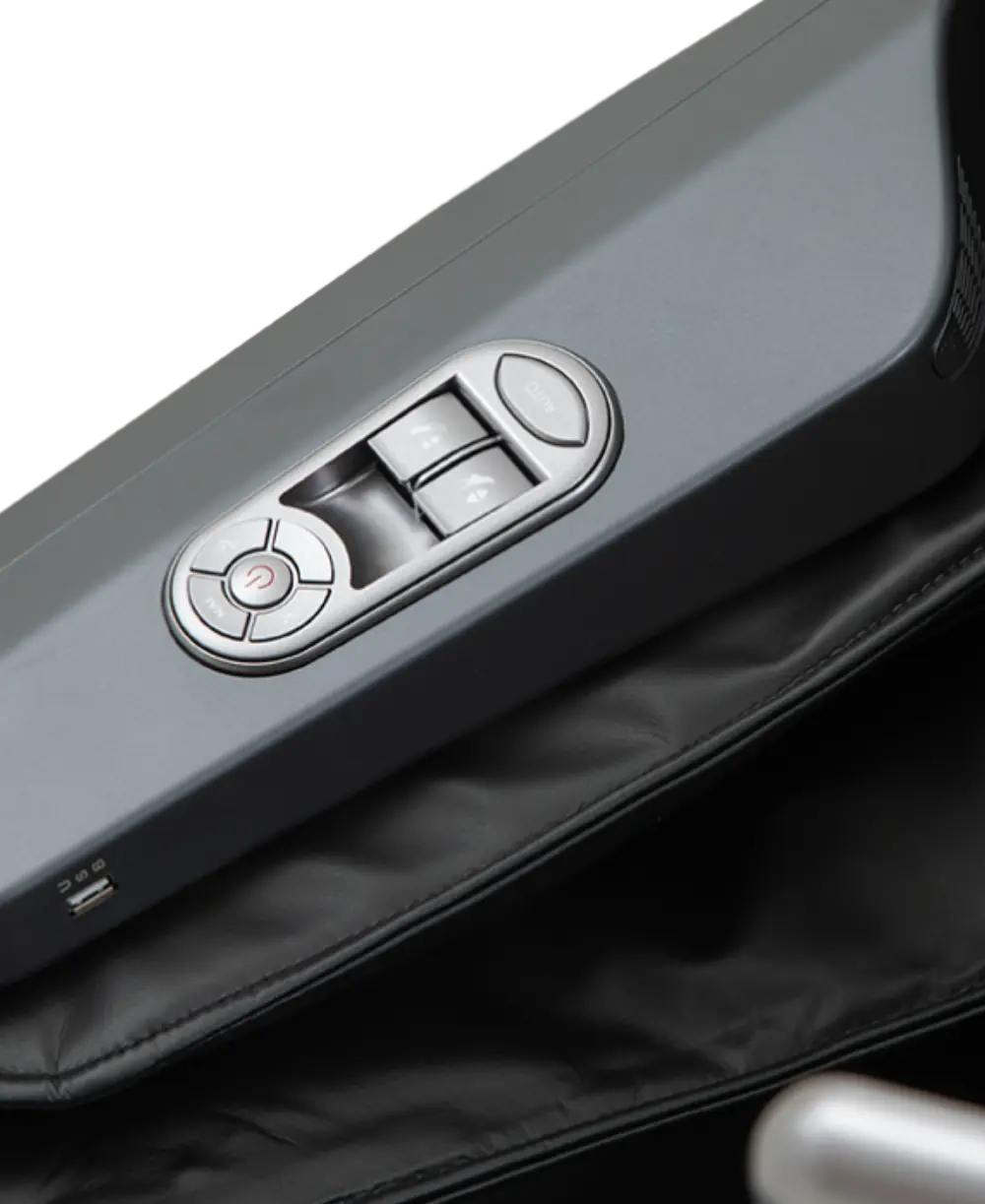 W podłokietniku (zarządzanie pozycją fotela, pozycją i odległością podnóżka, przełączanie programów auto)