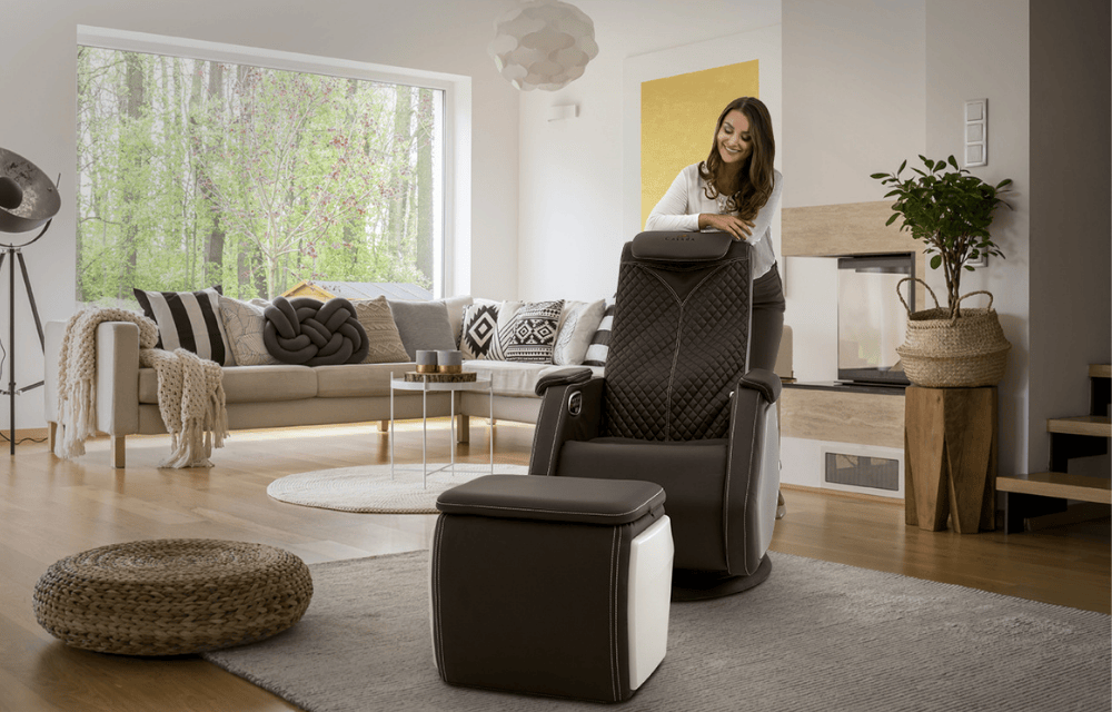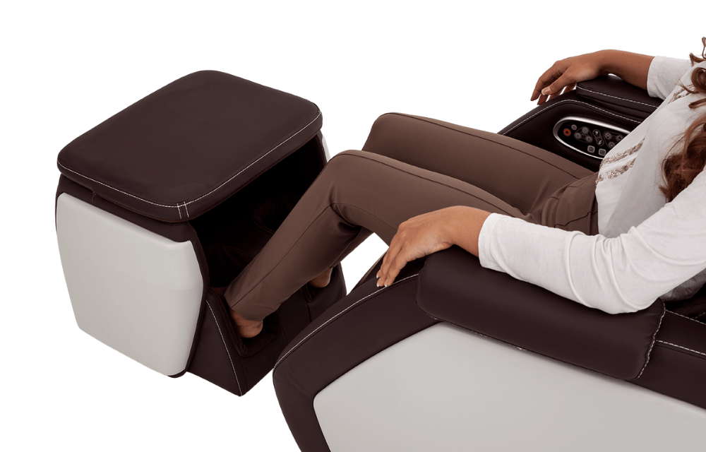 Fotel masujący z osobną jednostką podnóżka - komfort w kompaktowym wydaniu.