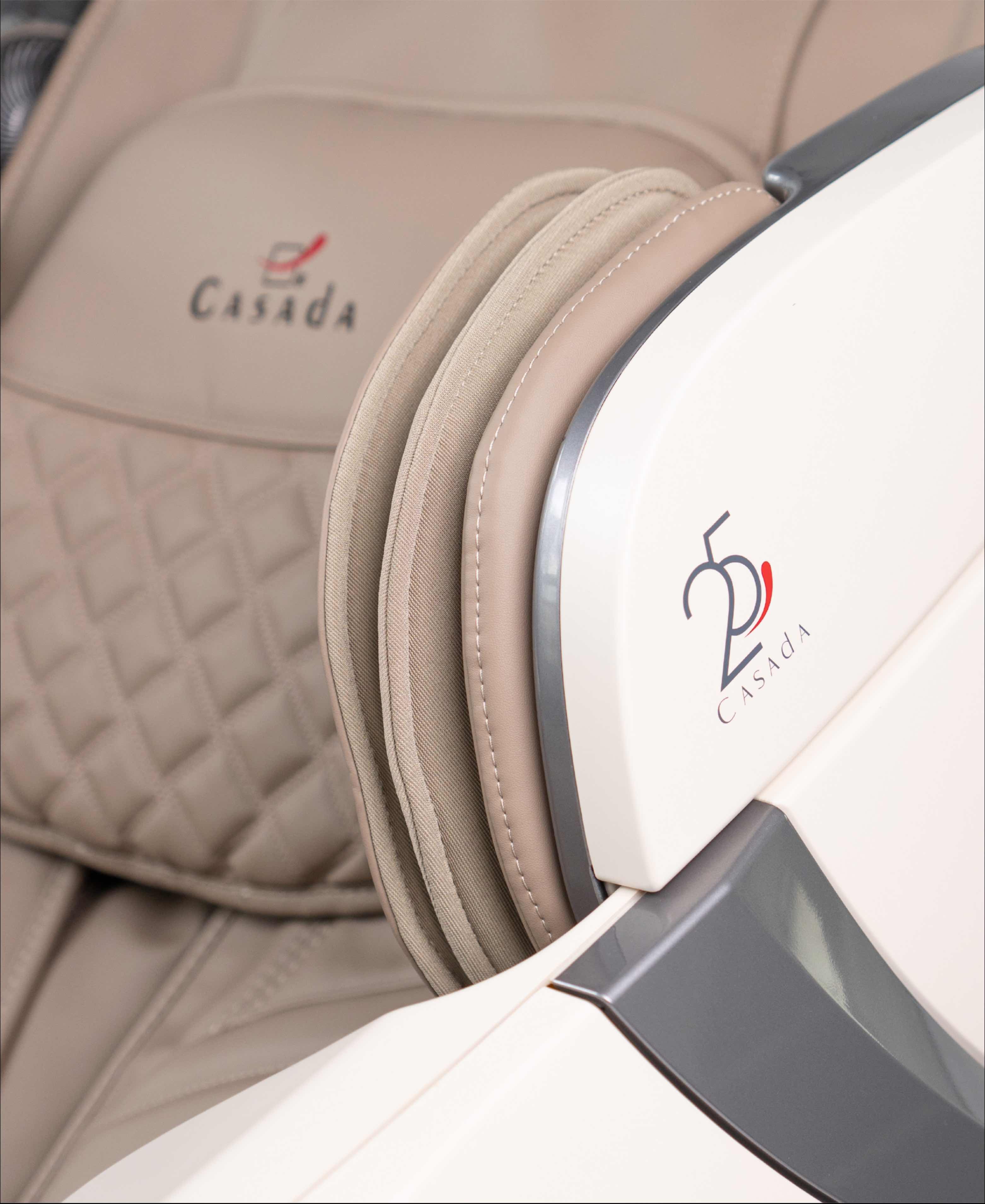 Ten model - jak wszystkie fotele masujące marki Casada - masuje również przedramiona i dłonie, dzięki systemowi poduszek powietrznych, wykonujących masaż kompresyjny (uciskowy).